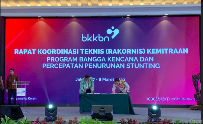 KORANBOGOR.com,JAKARTA-Badan Kependudukan dan Keluarga Berencana Nasional (BKKBN) menjalin kerjasama kemitraan dengan Assosiasi Pemerintah Desa Seluruh Indonesia (APDESI) dalam program Bangga Kencana dan Percepatan Penurunan Stunting yang berlangsung di Hotel Sahid, Jakarta, Selasa (07/02/2023).
