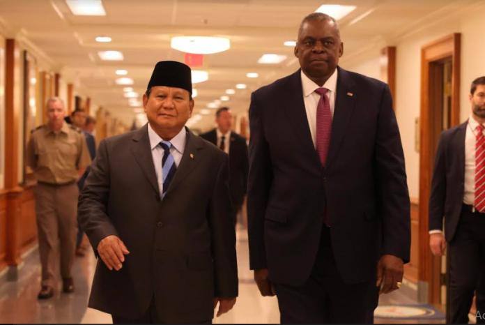 KORANBOGOR.com,AMERIKA SERIKAT-Menteri Pertahanan Prabowo Subianto bertemu dengan Menteri Pertahanan Amerika Serikat Lloyd James Austin III untuk bersama-sama menegaskan kembali kekuatan pilar pertahanan Kemitraan Strategis, di Gedung Pentagon, Amerika Serikat, Kamis (24/8).