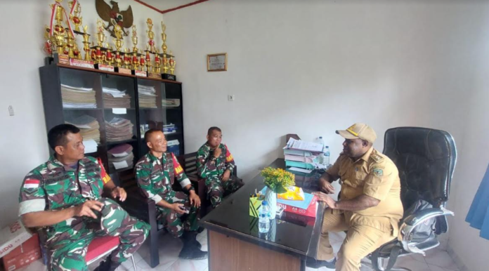 KORANBOGOR.com,TIMIKA-Agar terus bersinergi bersama elemen masyarakat di wilayah binaanya, Babinsa Koramil 1710-02/Timika rutin melaksanakan Komsos melalui kegiatan binternya. Kali ini dipimpin Serka Hadi Refra melaksanakan Komsos dengan Kepala Kelurahan Kwamki Baru, Bapak Andreas Aulia, S.I.P., bertempat di Kantor Kelurahan Kwamki Baru, Distrik Mimika Baru, Kab. Mimika, Rabu (25/10/2023).