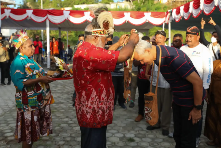 Pengangkatan Ganjar sebagai anak adat itu dilakukan melalui prosesi adat yang dipimpin Kepala Suku Hassor Gerson Yulianus Hassor.
