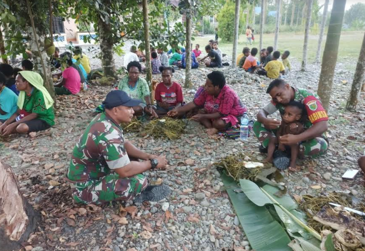 Seperti halnya yang dilakukan oleh Babinsa Koramil 1710-02/Timika Sertu Eliza Seru Serusiay, Serda Batkunda dan Koptu Williem Kawang, melalui kegiatan Binternya hari ini, para Babinsa tersebut sedang Komsos bersama salah satu warga binaan yang melaksanakan acara adat bakar batu, bertempat di Kp. Ninabua Distrik Mimika Baru, Kab. Mimika, Jumat (24/11/2023).