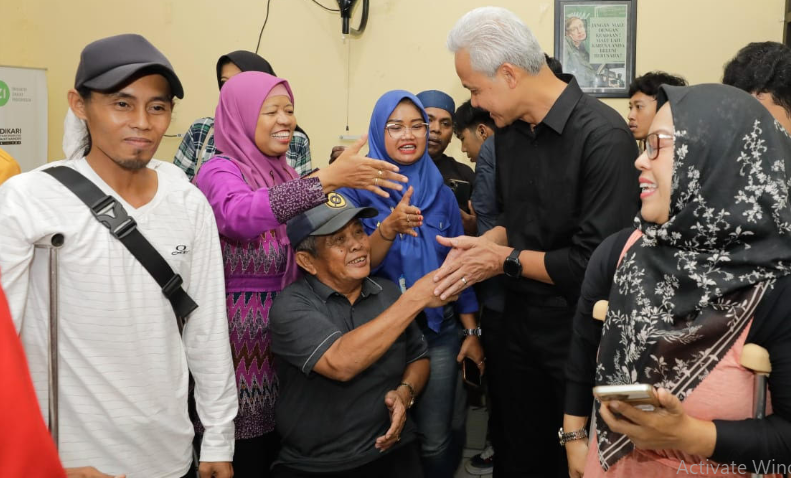 KORANBOGOR.COM.BALIKPAPAN-Calon presiden nomor urut 3 Ganjar Pranowo bertemu kelompok disabilitas yang ada di Loka Bina Karya Balikpapan, Kalimantan Timur (06/12).