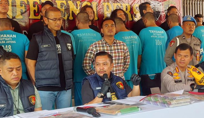 Jumpa pers pengungkapan dugaan perbuatan melawan hukum oleh delapan debt collector (DC), di lobi Mako Ditreskrimum Polda Jawa Tengah.