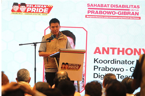 KORANBOGOR.com,JAKARTA-Koordinator Nasional Relawan Prabowo-Gibran Digital Team (PRIDE), Anthony Leong, mengatakan PRIDE menyediakan kanal khusus untuk penyandang disabilitas