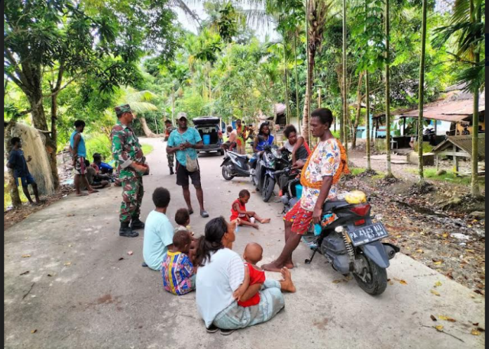 KORANBOGOR.com,TIMIKA-Keakraban antara Babinsa dan masyarakat perlu dibina secara terus menerus. Hal tersebut dilakukan untuk menjaga persatuan dan kesatuan antara TNI dengan rakyat sehingga ketahanan wilayah bisa terjaga. Babinsa sendiri harus sering turun ke lapangan untuk bisa bersilaturahmi atau berdiskusi sehingga setiap permasalahan sosial di wilayah binaan bisa terdeteksi sejak dini.