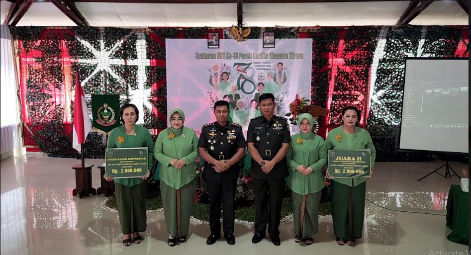 Dandim 1710/Mimika, Letkol Inf Dedy Dwi Cahyadi hadir memimpin kegiatan ini yang didampingi oleh Ketua Persit KCK Cab XXXV, Ny. Rindang Dedy Dwi Cahyadi. Perayaan HUT ke-78 Persit KCK tahun 2024 yang mengambil tema “Persit Peduli, Kreatif dan Sederhana” ini diawali dengan penayangan sejarah singkat Persit Kartika Chandra Kirana dan juga prakata dari Ibu Hasnawati Abdul Munir (Wakil Ketua Persit KCK Cab XXXV Kodim 1710/Mimika) selaku Ketua Panitia. Kegiatan pun dilanjutkan dengan penyerahan penghargaan kepada anggota Persit yang menorehkan prestasi dalam lomba Posyandu dan Kader Berprestasi.