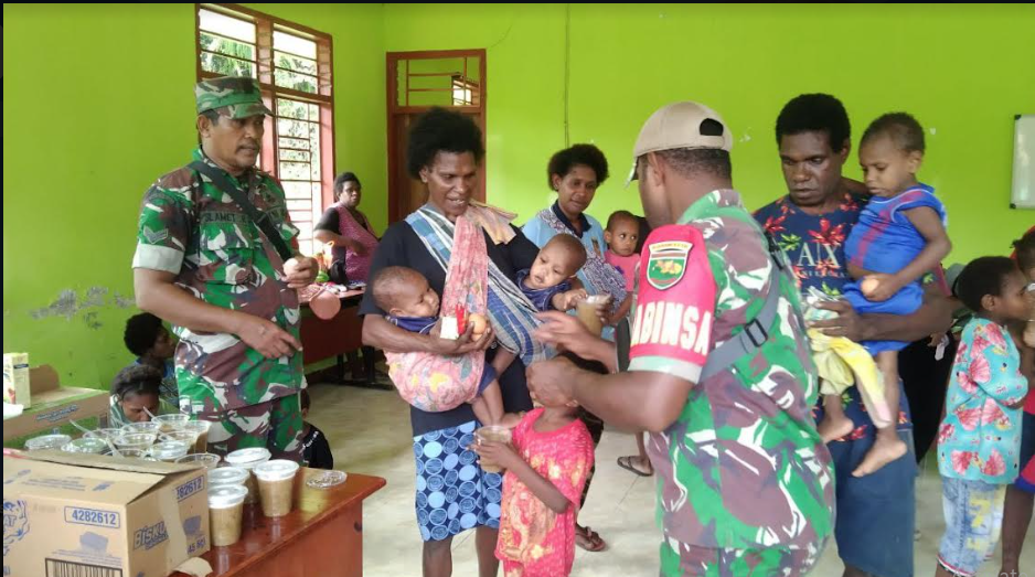 KORANBOGOR.com,TIMIKA-Dalam upaya membangun sinergitas dan kebersamaan dalam pelayanan kesehatan masyarakat, Babinsa Koramil 1710-07/Mapurujaya Sertu Selamet Riyadi dan Pratu Kowet bersama dengan petugas kesehatan Puskesmas dan Bidan Desa (Bindes) melaksanakan kegiatan Posyandu bertempat di Balai Kampung Tipuka, Distrik Mimika Timur, Kab. Mimika, Rabu (15/05/2024).