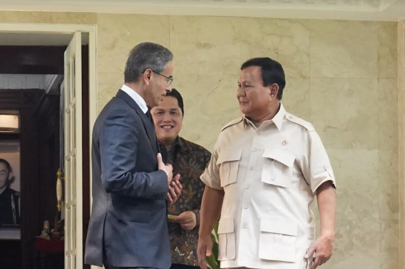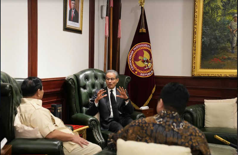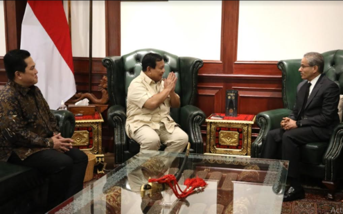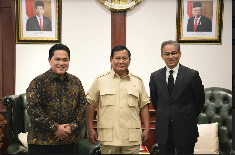 KORANBOGOR.com,JAKARTA-Menteri Pertahanan RI Prabowo Subianto menerima kunjungan Menteri Badan Usaha Milik Negara (BUMN) Erick Thohir dan pendiri Emaar Properties, pengusaha properti asal Uni Emirat Arab dan pemilik gedung tertinggi di dunia Burj Khalifa, Mohamed Ali Rashed Alabbar, di kantor Kementerian Pertahanan RI, Jakarta, Senin (27/5/2024).
