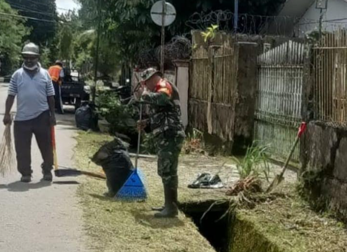 KORANBOGOR.com,TIMIKA-Guna menciptakan lingkungan yang bersih, rapi dan nyaman di lingkungan masyarakat, Babinsa Koramil 1710-02/Timika Sertu Elisa Serusiay bersama Kelompok Swadaya Masyarakat Kelurahan Dingo Narama melakukan kegiatan karya bakti pembersihan jalan di Kelurahan Dingo Narama, Distrik Mimika Baru, Kab. Mimika. Selasa (28/5/2024).