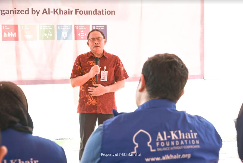 Direktur Al-Khair Foundation Southeast Asia, Mohab Alamawi dalam sambutannya mengucapkan terima kasihnya kepada para donatur BSI Maslahat.