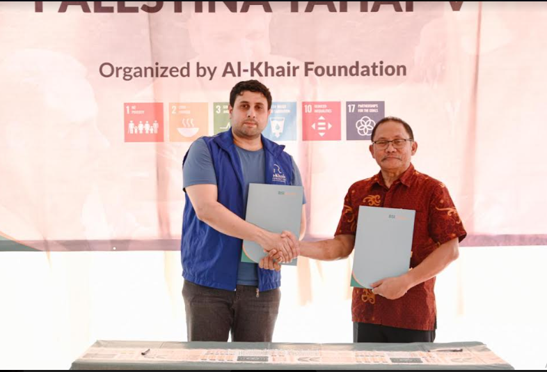 Serah terima bantuan Palestina tahap V dilakukan di Rumah Qur’an BSI (Bina Santri Indonesia) Parung, pada Rabu (19/06) yang dihadiri oleh Direktur Al-Khair Foundation Southeast Asia, Mohab Alamawi; Sekretaris Al-Khair Foundation Southeast Asia, Desi Astuti; Direktur Eksekutif BSI Maslahat, Sukoriyanto Saputro; Direktur Program Care & Humanity BSI Maslahat, Ilham Syahputra.