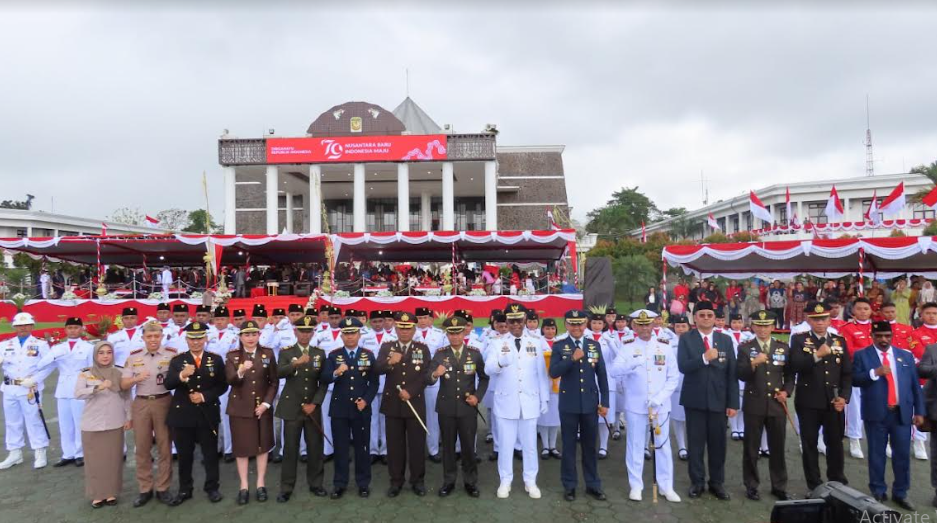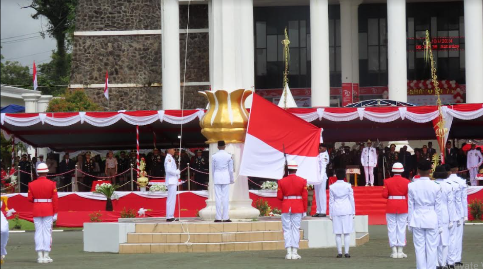 KORANBOGOR.com,TIMIKA-Komandan Kodim 1710/Mimika, Letkol Inf Dedy Cahyadi melaksanakan upacara peringatan HUT ke-79 Republik Indonesia di Kantor Pusat Pemerintahan Kabupaten Mimika, Distrik Kuala Kencana, Sabtu (17/08/2024).