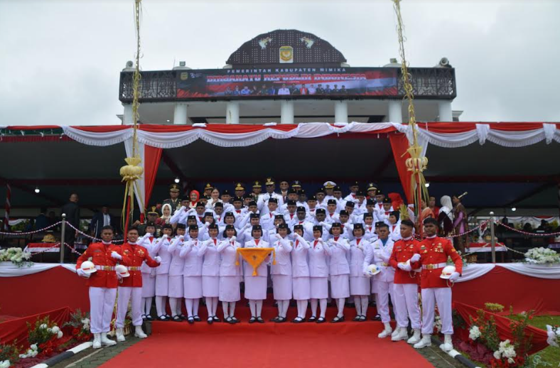 Dalam upacara tersebut juga dibacakan teks Proklamasi oleh Ketua DPRD Kabupaten Mimika, Bapak Anton Bukaleng, S.Sos., M.Si selanjutnya dilakukan pengibaran bendera merah putih oleh Paskibra yang terdiri dari siswa-siswi terbaik Kabupaten Mimika. Kegiatan pun diakhiri dengan parade paduan suara dan sesi foto bersama.