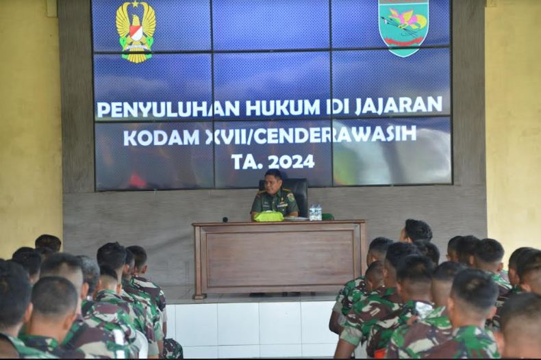 Pada kesempatan yang sama, Kakumdam XVII/Cenderawasih Kolonel Chk Achmad Sholihien menyampaikan, penyuluhan hukum yang dilaksanakan sebagai upaya untuk meningkatkan kesadaran hukum bagi Prajurit, PNS dan keluarganya di satuan jajaran Kodam XVII/Cenderawasih dengan tema “Optimalisasi Peran Hukum Bagi Prajurit, PNS TNI AD Beserta Keluarganya Guna Mendukung Tugas Pokok TNI AD”.