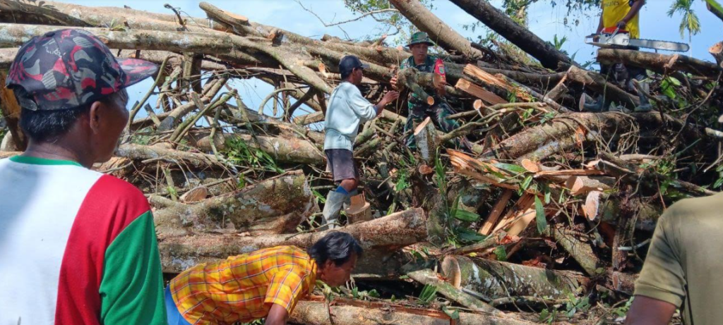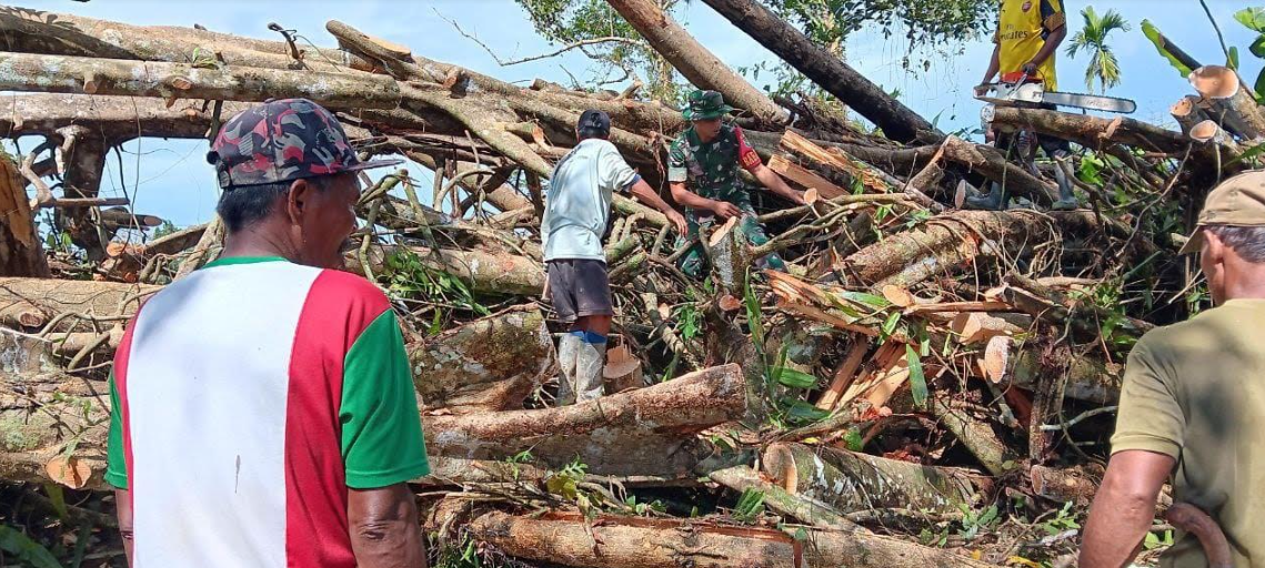 Babinsa Koramil Mapurujaya dan Warga Gotong Royong Bersihkan Pohon Tumbang