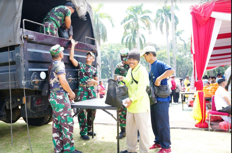 KORANBOGOR.com,JAKARTA-Dalam rangka kegiatan peringatan Hari Ulang Tahun (HUT) Ke-79 Tahun 2024, Tentara Nasional Indonesia (TNI) menggelar kegiatan bakti sosial berupa pembagian sembako kepada masyarakat yang membutuhkan, Warakawuri, Purnawirawan TNI/Polri yang diselenggarakan di Lapangan Silang Monas, Jakarta Pusat, Minggu (22/09/2024).