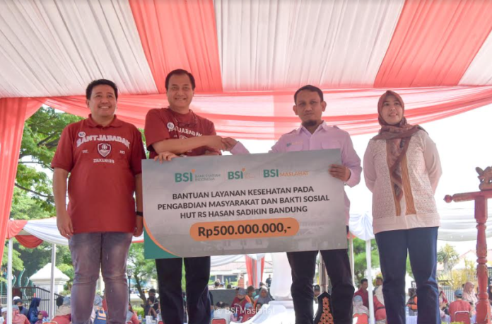KORANBOGOR/com,BANDUNG-Bangun Sejahtera Indonesia Maslahat (BSI Maslahat) dan BSI berikan bantuan layanan Kesehatan di HUT 101 Rumah Sakit Hasan Sadikin Bandung (RSHS). Selain bantuan layanan Kesehatan, dalam HUT 101 RSHS di Kabupaten Cirebon juga dilakukan acara pengabdian masyarakat dan bakti sosial.