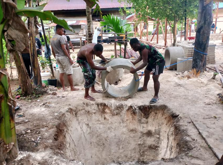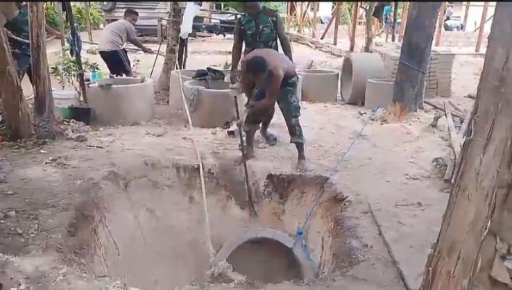 KORANBOGOR.com,RAJA AMPAT- Angota Satgas TMMD Ke-122 Kodim 1805/Raja Ampat melaksanakan kegiatan gotong-royong melakukan pemasangan cincin sumur gali di Kampung Saporkren, Distrik Waigeo Selatan, Kab. Raja Ampat, Kamis (10/10/2024).