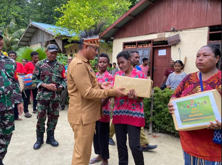 KORANBOGOR.com,RAJA AMPAT-Ketua Tim Pengawasan dan Evaluasi (Wasev) TMMD, Kolonel Inf Purnomosidi S.IP., M.Han,. kunjungi pelaksanaan TMMD Ke-122 Kodim 1805/Raja Ampat. Dalam kunjungannya tersebut, sejumlah bantuan diserahkan untuk warga Kampung Saporkren berupa sembako 100 paket dan kulbok 50 biji.
