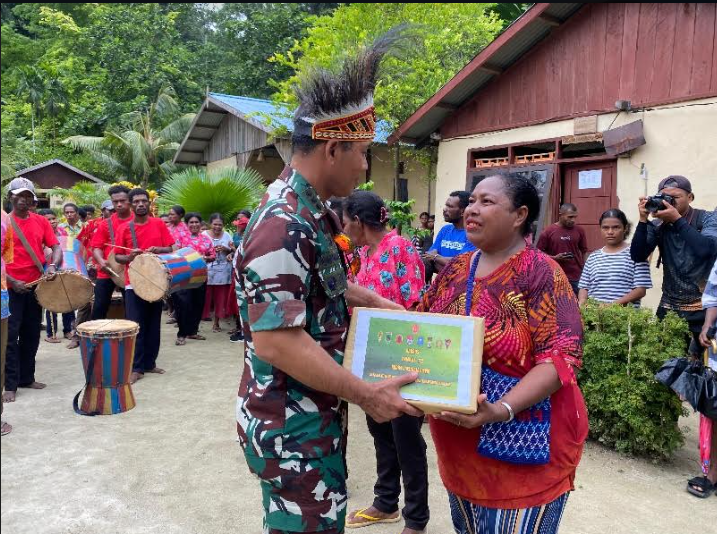 Tim Wasev TMMD Sterad Turut Serta Serahkan Sejumlah Bantuan Untuk Warga Kampung Saporkren