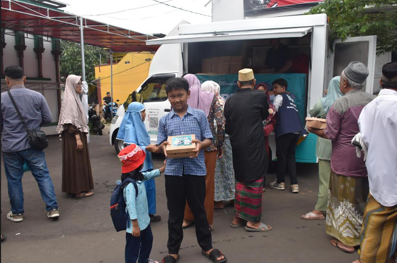 KORANBOGOR.com,JAKARTA-BSI Maslahat salurkan 1.000 paket makan siang di dua lokasi dalam program warteg mobile (Jum’at Berkah). Sebanyak 500 paket dibagikan kepada warga sekitar Masjid Miftahul Jannah Rempoa, Ciputat Timur, Tangerang Selatan dan 500 paket dibagikan kepada MI Miftahurrahman Jalan Swakarsa 1 No. 1A, RT 3 RW 3, Pondok Kelapa, Kecamatan Duren Sawit, Kota Jakarta Timur. Hal ini merupakan bagian dari komitmen BSI Maslahat dalam mendukung Sustainable Development Goals (SDGs) 2030, khususnya poin “Zero Hunger”.