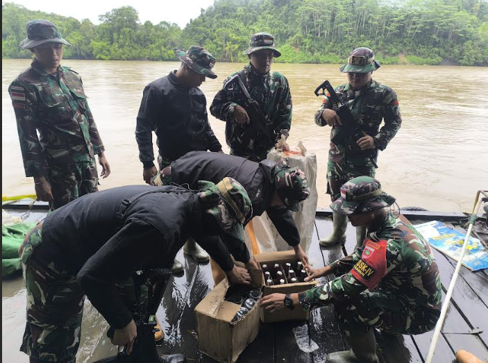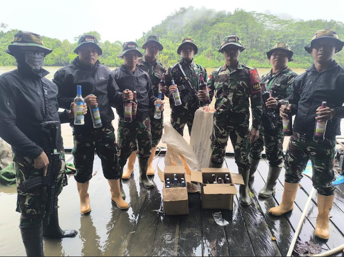 KORANBOGOR.com,JAKARTA-Sub Satgas Penyelundupan TNI kembali menorehkan keberhasilan dalam menggagalkan aksi penyelundupan. Kali ini, Tim patroli keamanan (Patkam) Pos Long Bagun SSK IV Satuan Tugas (Satgas) Pengamanan Perbatasan (Pamtas) RI-MLY Yonzipur 8/SMG berhasil menggagalkan upaya penyelundupan minuman keras ilegal di perbatasan Indonesia-Malaysia. Kejadian ini terjadi di tepi Sungai Mahakam Ulu, Kampung Ujoh Bilang, Kecamatan Long Bagun, Kabupaten Mahakam Ulu, Selasa (18/02/2025).