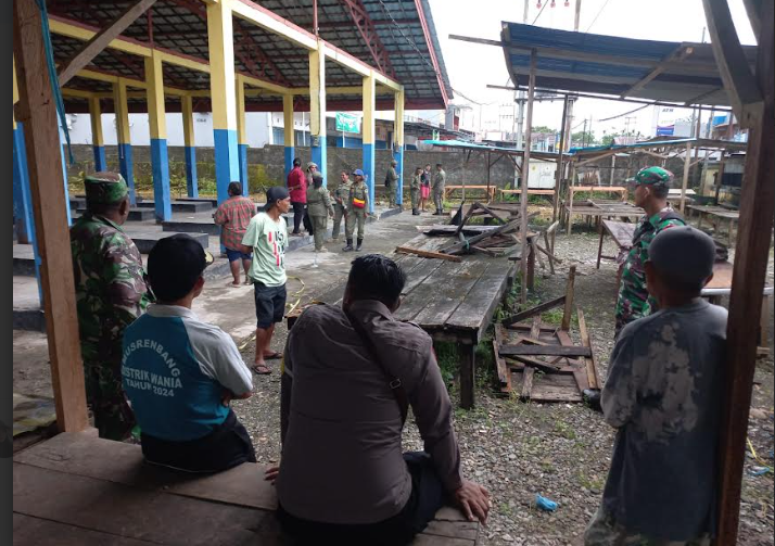 KORANBOGOR.com,TIMIKA-Babinsa Koramil 1710-02/Timika dipimpin Serka Aloesius Weyau bersama Bhabinkamtibmas dan Satpol PP melakukan operasi penertiban para pedagang bertempat di pasar tradisional Sp.1 Distrik Wania Kab. Mimika yang berjualan tidak pada tempatnya, sehingga mengganggu pengguna jalan. Kamis (13/03/2025).