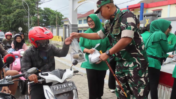 KORANBOGOR.com,TIMIKA-Memasuki hari ke-12 bulan suci Ramadhan 1446 H, Kodim 1710/Mimika kembali membagikan takjil gratis berbuka puasa kepada pengendara motor atau masyarakat pengguna jalan yang melintas depan SMPN 2 Mimika Jl. Budi Utomo, Distrik Mimika Baru, Kabupaten Mimika, Rabu (12/03/2025).