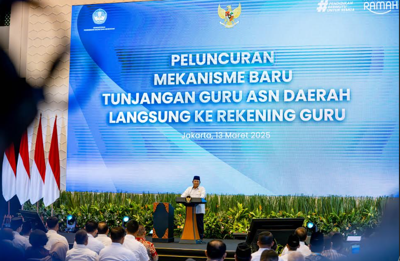 KORANBOGOR.com,JAKARTA-Panglima TNI Jenderal TNI Agus Subiyanto mendampingi Presiden RI Prabowo Subianto menghadiri peluncuran mekanisme baru penyaluran tunjangan guru Aparatur Sipil Negara (ASN) daerah langsung ke rekening guru penerima, bertempat di Kantor Kementerian Pendidikan Dasar dan Menengah (Kemendikdasmen), Jakarta, Kamis (13/03/2025).