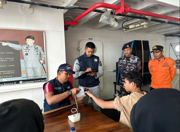 Tim VBSS tiba di lokasi pada pukul 04.20 WIB dan langsung mengevakuasi 12 ABK dari total 17 ABK yang berada di kapal. Setelah dievakuasi, seluruh ABK menjalani pengecekan kesehatan dan pendataan di atas KN Tanjung Datu-301.