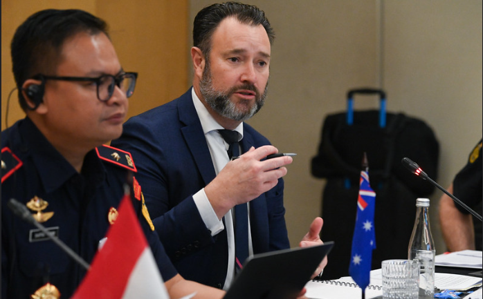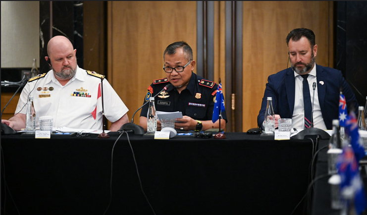 Commodore Troy Van Tienhoven, Chief of Operations pada Maritime Border Command, mencatat diskusi yang berharga seputar berbagi informasi terkini tentang penegakan hukum.