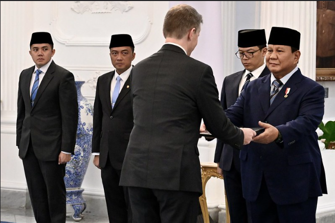 KORANBOGOR.com,JAKARTA-Duta Besar Rod Brazier telah menyerahkan surat kepercayaan kepada Presiden Prabowo di Istana Merdeka Jakarta kemarin.