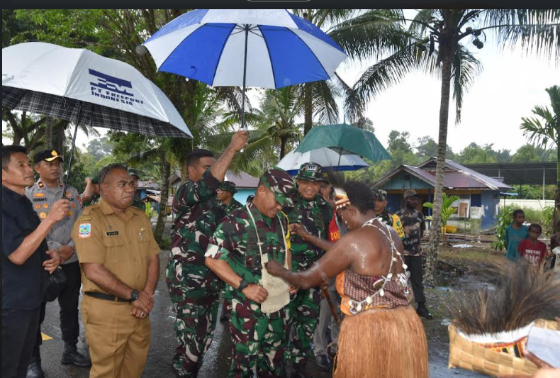 Kegiatan diawali paparan Dansatgas TMMD Letkol Inf M. Slamet Wijaya, S. Sos., M. Han., M.A. di Makodim 1710/Mimika dilanjutkan peninjauan ke lokasi sasaran TMMD. Saat tiba di Kampung Pigapu, Tim Wasev yang didampingi Dansatgas TMMD ke-124 disambut dengan tradisi pengalungan Noken dan tarian adat dari suku Kamoro oleh warga Kampung Pigapu.