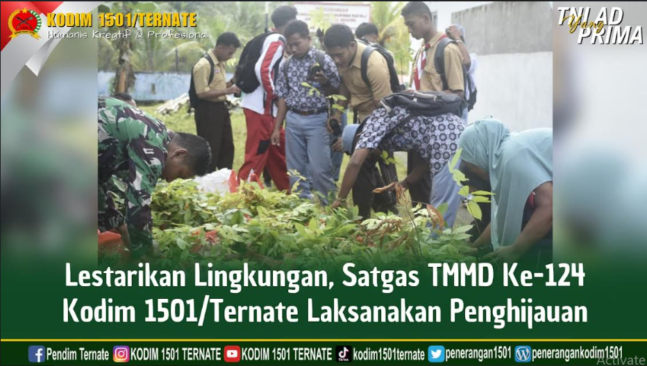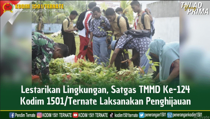 Pasiter Kodim 1501/Ternate, Kapten Inf Aga Galela dalam kesempatan tersebut menyampaikan, bahwa penanaman pohon dilaksanakan bersama sejumlah masyarakat di lokasi TMMD Ke-124 Kodim 1501/Ternate. “Menanam pohon supaya tercipta lingkungan yang hijau dan asri serta sebagai penyimpan cadangan air saat musim penghujan,” ujarnya.