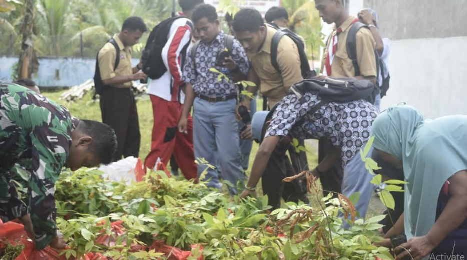 KORANBOGOR.com,HALMABAR-Satgas TMMD Ke-124 Kodim 1501/Ternate melaksanakan penghijauan dengan menanam berbagai macam tanaman pohon keras sebagai upaya pelestarian lingkungan bagi masyarakat di Desa Jarakore, Kecamatan Sahu, Kabupaten Halmahera Barat. Minggu (25/5/2025).