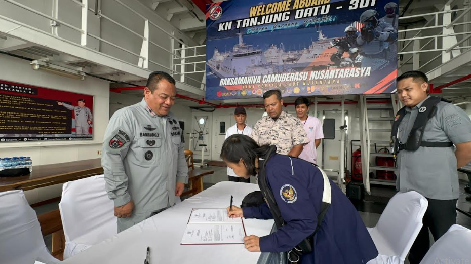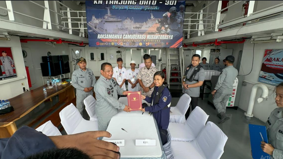 KORANBOGOR.com,JAKARTA-Bakamla RI yang diwakili oleh Kepala Zona Bakamla Barat Laksma Bakamla Bambang Trijanto, melaksanakan serah terima dan penjemputan 3 Anak Buah Kapal (ABK) KM. Tembisan Agensi berstatus Warga Negara Indonesia (WNI), yang ditangkap oleh Agensi Penguatkuasaan Maritim Malaysia (APMM), di perairan perbatasan Indonesia-Malaysia, Kamis (26/6/2025).