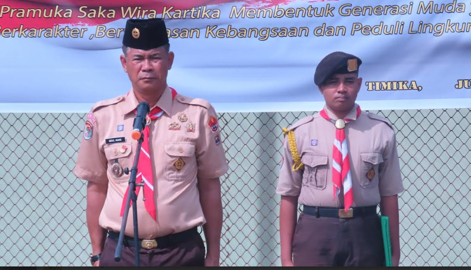KORANBOGOR.com,TIMIKA-Kasdim 1710/Mimika Mayor Inf Abdul Munir mewakili Dandim 1710/Mimika Letkol Inf M. Slamet Wijaya, S. Sos., M. Han., M.A. menutup Perkemahan Sabtu Minggu (Persami) Pramuka Saka Wira Kartika Kodim 1710/Mimika bertempat di Makodim 1710/Mimika, Kab. Mimika. Minggu (29/6/2025).