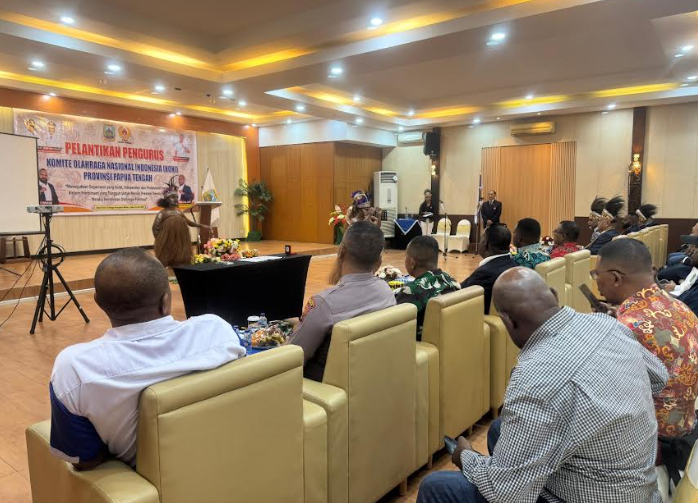 Pelantikan dan pengukuhan dilakukan langsung oleh Ketua KONI Pusat di Hotel Grand Tembaga, Kel. Nawaripi, Distrik Mimika Baru, Kabupaten Mimika.