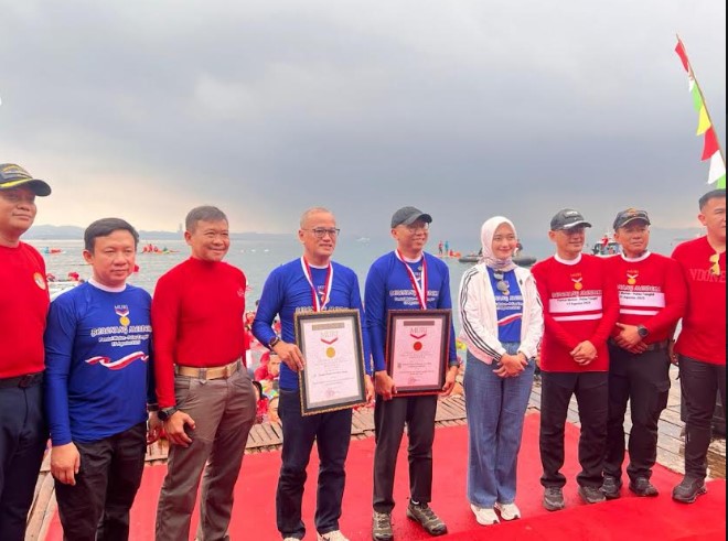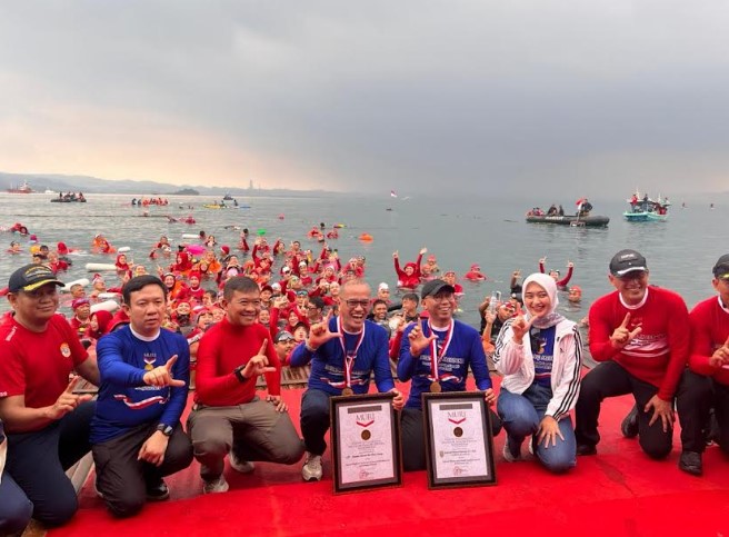 Acara turut dihadiri oleh sejumlah pejabat penting, di antaranya Wakil Gubernur Lampung, Danrem 043/Gatam, Danbrigif 4 Marinir/BS serta jajaran Forkopimda Lampung dan Bupati Pesawaran, Dendi Romadhona. Kegiatan ini juga diisi dengan penyerahan Piagam Rekor MURI. Melalui Kolaborasi Berenang Merdeka 2025, semangat gotong royong dan nasionalisme masyarakat Lampung semakin terpatri, sekaligus menjadi momentum untuk meneguhkan tekad bersama menjaga kedaulatan bangsa dan kelestarian alam Indonesia.