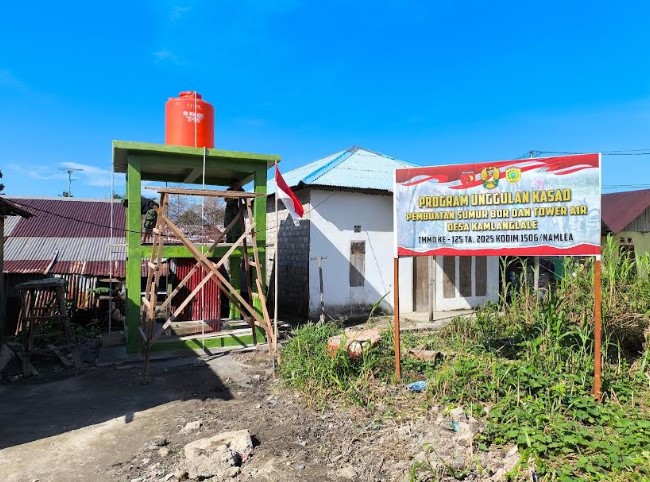 KORANBOGOR.com,BURU SELATAN-Satuan Tugas (Satgas) TNI Manunggal Membangun Desa (TMMD) Ke-125 Kodim 1506/Namlea terus mempercepat penyelesaian pekerjaan fisik, termasuk pembangunan sumur bor dan tower air yang telah mencapai 90%. Pembangunan ini merupakan salah satu upaya TNI untuk meningkatkan kualitas hidup masyarakat dan memenuhi kebutuhan dasar air bersih di wilayah Kabupaten Buru Selatan.