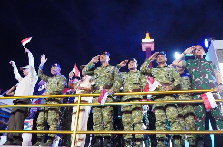 KORANBOGOR.com,JAKARTA-Dalam rangkaian peringatan Hari Ulang Tahun (HUT) ke-80 Kemerdekaan Republik Indonesia, Panglima TNI Jenderal TNI Agus Subiyanto menghadiri acara Pesta Rakyat & Karnaval Bersatu yang digelar di kawasan Monumen Nasional (Monas), Jakarta Pusat, Minggu (17/8/2025).