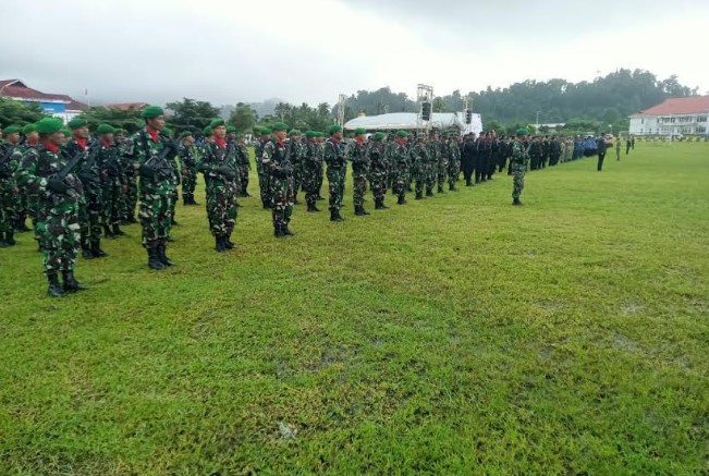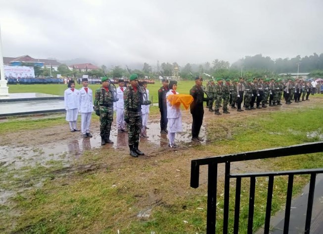 Satgas TMMD Kodim 1506 / Namlea Ikuti Upacara HUT Ke-80 Kemerdekaan RI di Alun-Alun Kota Buru Selatan