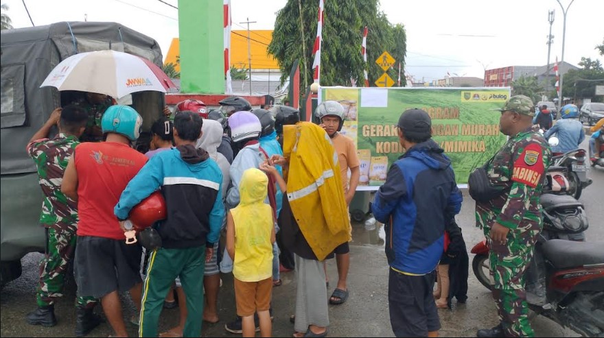 KORANBOGOR.com,TIMIKA-Dalam rangka mendukung program pemerintah guna menstabilkan harga beras, Kodim 1710/Mimika bekerjasama dengan Bulog Kancab Mimika terus gencarkan Gerakan Pangan Murah (GPM) penjualan beras SPHP (Stabilisasi Pasokan dan Harga Pangan) di wilayah Kab. Mimika, Rabu (20/08/2025).