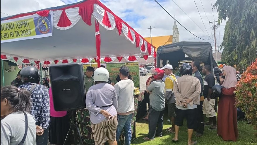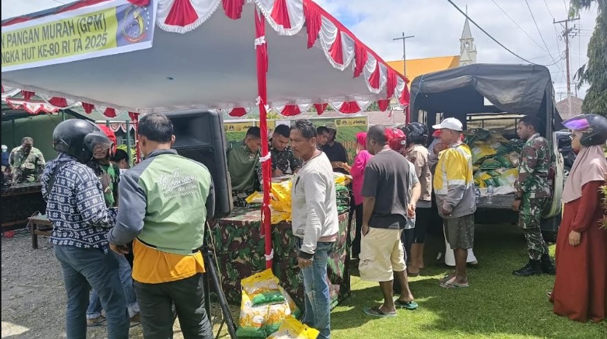 KORANBOGOR.com,TIMIKA-Kodim 1710/Mimika melaksanakan kegiatan gerakan pangan murah sebagai bentuk kepedulian kepada masyarakat. Kegiatan ini merupakan sinergitas antara Kodim 1710/Mimika dengan Bulog Kab. Mimika dalam mendukung stabilitas pasokan dan harga pangan, khususnya beras.