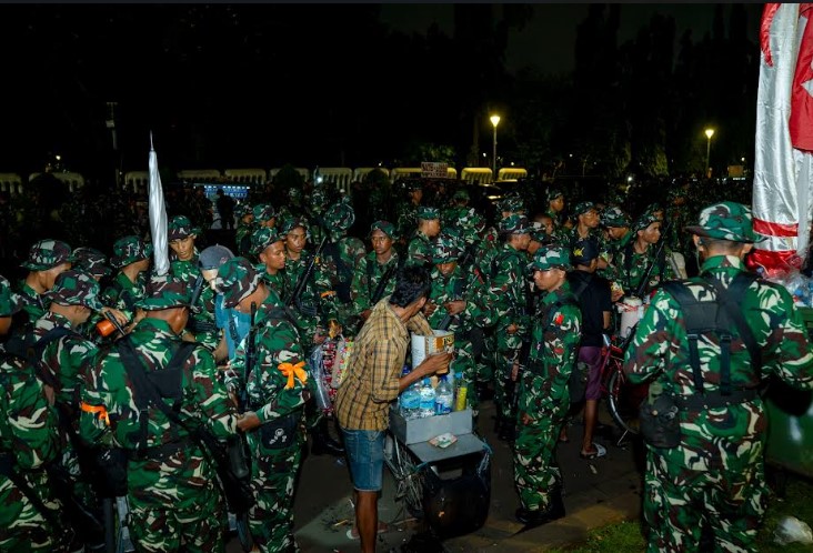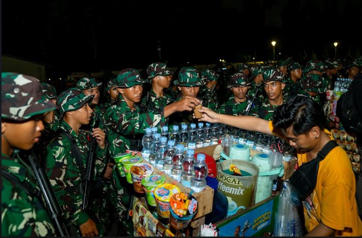 KORANBOGOR.com,JAKARTA-Suasana hangat dan penuh kebersamaan tercipta di Kawasan Monumen Nasional (Monas), Jakarta Pusat, Minggu (31/08/2025), ketika Panglima TNI Jenderal TNI Agus Subiyanto duduk berbaur makan malam bersama seluruh prajurit TNI yang sedang melaksanakan pengamanan Ibukota. Momen ini tidak hanya menghadirkan kedekatan antara pimpinan dan prajurit, tetapi juga menjadi ruang interaksi humanis TNI dengan masyarakat.