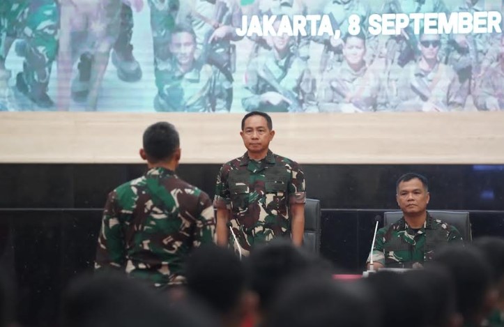 KORANBOGOR.com.JAKARTA-Panglima TNI Jenderal TNI Agus Subiyanto memberikan pengarahan kepada personel purna tugas kontingen Latihan Bersama (Latma) Pertempuran Kota (Purkota) TNI gelombang I yang baru saja menyelesaikan latihan bersama Angkatan Bersenjata Yordania dan Belarusia, bertempat di Aula Gatot Soebroto, Mabes TNI, Cilangkap. Jakarta Timur. Senin (8/9/2025).