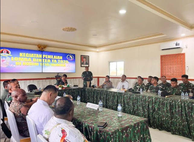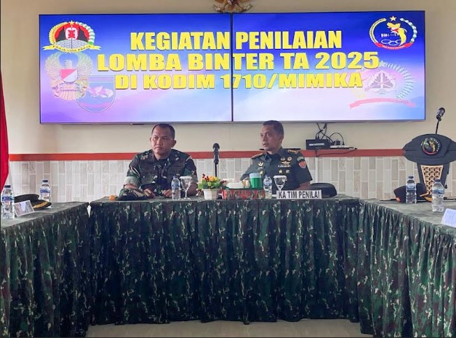KORANBOGOR.com,TIMIKA-Kodim 1710/Mimika, menerima kunjungan kerja Tim Penilaian Lomba Pembinaan Teritorial (Binter) Tahun Anggaran 2025 yang dipimpin oleh Kolonel Inf Suhartono, S.I.P., Kegiatan berlangsung pada Senin (8/9/2025) di Makodim 1710/Mimika, jalan Agimuga Mile 32, Kab. Mimika. Lomba Binter merupakan agenda tahunan TNI Angkatan Darat yang melibatkan seluruh Kodam untuk menilai dan memilih satuan Kodim terbaik sebagai perwakilan di tingkat nasional.