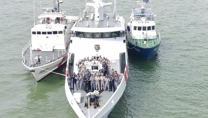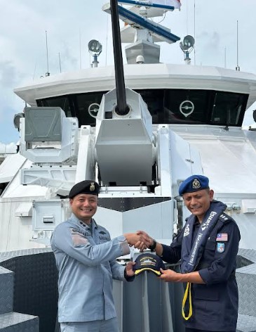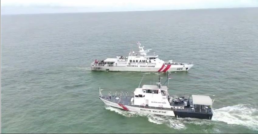 KORANBOGOR.com,SELAT MALAKA-KN. Belut Laut-406 yang dikomandani oleh Letkol Bakamla Haslul Prio Widiatmoko sukses melaksanakan Rendezvous (RV) pada posisi 01° 15’ 000’’ U – 103° 18’ 000’’ T dengan KM Marudu dari Agensi Penguatkuasaan Maritim Malaysia (APMM) dan PA 14 dari Pasukan Polis Marin Polis Diraja Malaysia (PPM PDRM), di perairan utara Pulau Iyu Kecil, Selat Malaka, Jumat (19/9/2025).