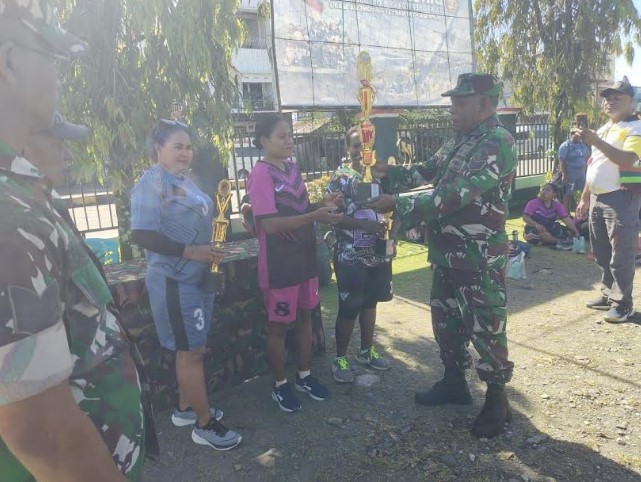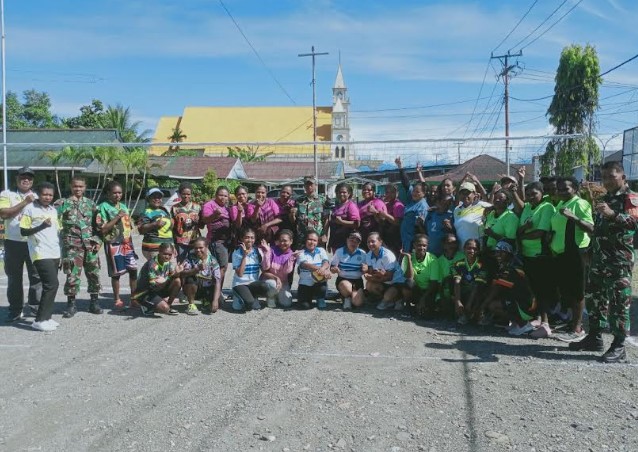 Koramil Timika Gelar Komsos Kreatif Bersama Warga Lewat Lomba Bola Voli