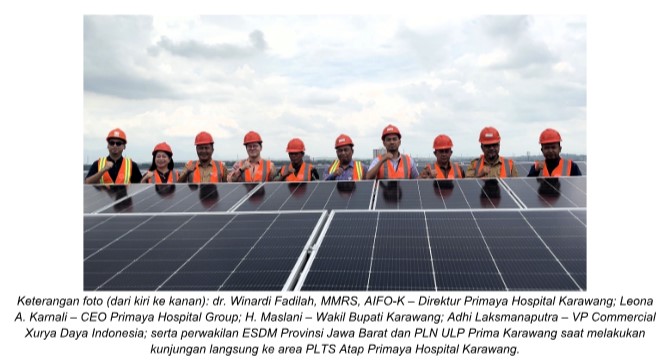 Fasilitas seluas 1.123 m² dengan kapasitas 164,7 kWp ini menjadikan Primaya Hospital Karawang sebagai rumah sakit pertama di Karawang yang mengintegrasikan energi surya sebagai sumber daya listrik alternatif. Peresmian turut dihadiri oleh drg. Yuli Astuti Saripawan, M.Kes, Direktur Pelayanan Kesehatan Rujukan Kementerian Kesehatan Republik Indonesia, H. Maslani, Wakil Bupati Karawang, Leona A. Karnali, CEO Primaya Hospital Group, dan Adhi Laksmanaputra, VP Commercial Xurya Daya Indonesia.